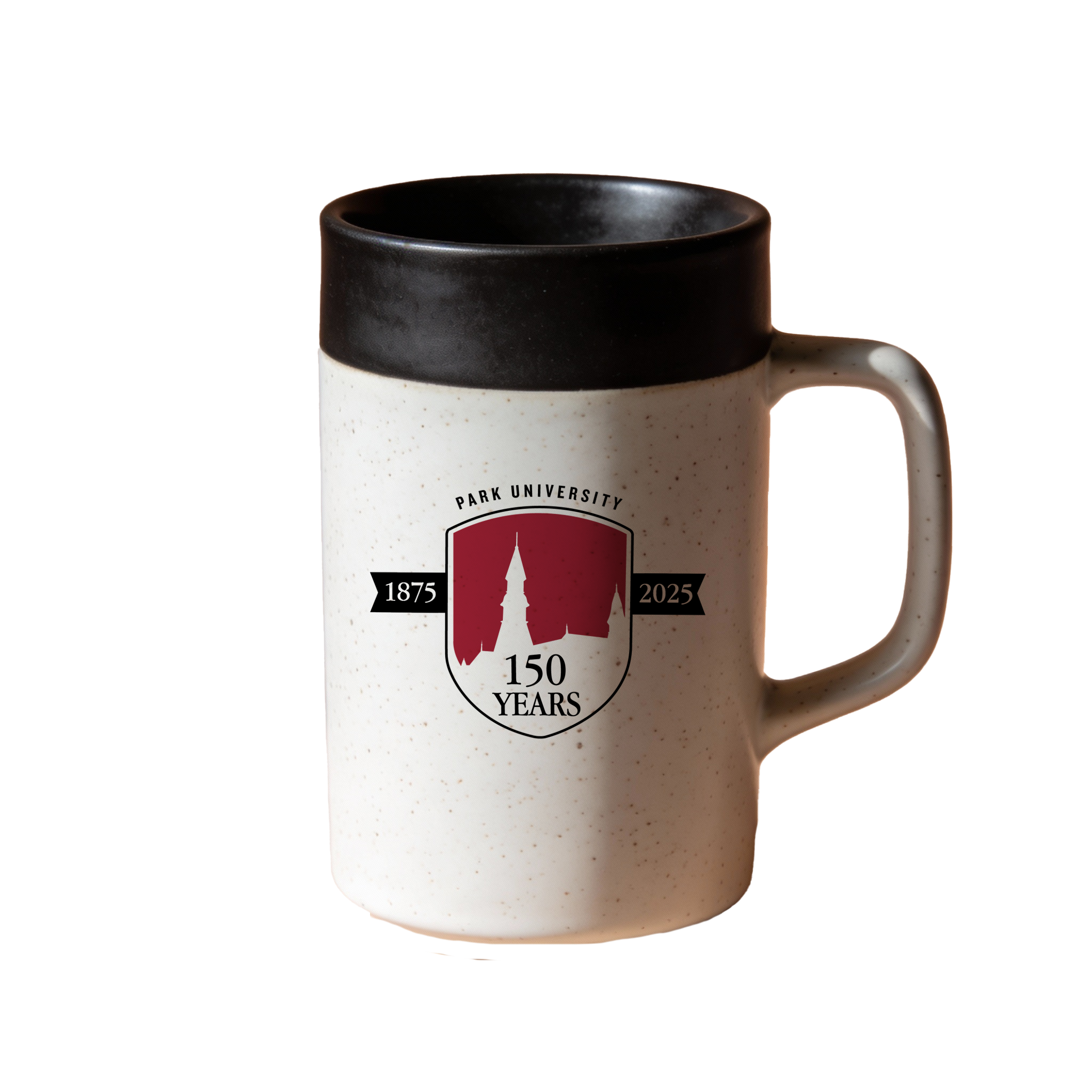 Unique coffee mug displaying two color 150 logo.