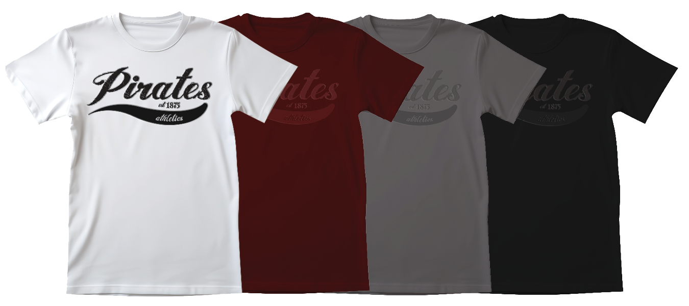 Tshirts with custom logo in assorted colors.